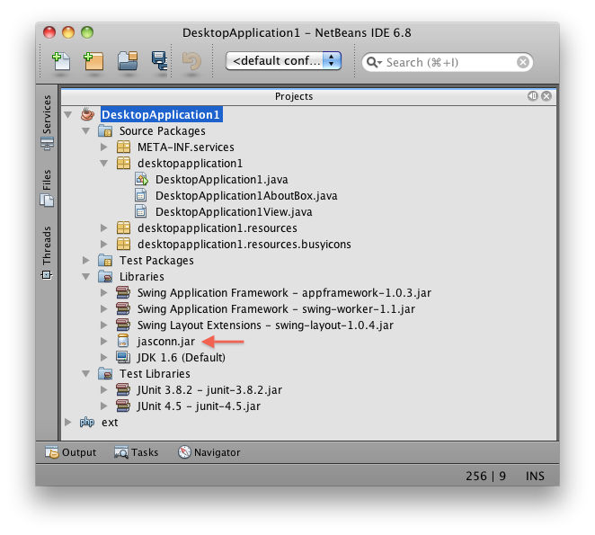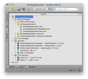 Zuerst fügen wir die jasconn.jar in den Libraries des neu angelegten Netbeans Projekts hinzu.