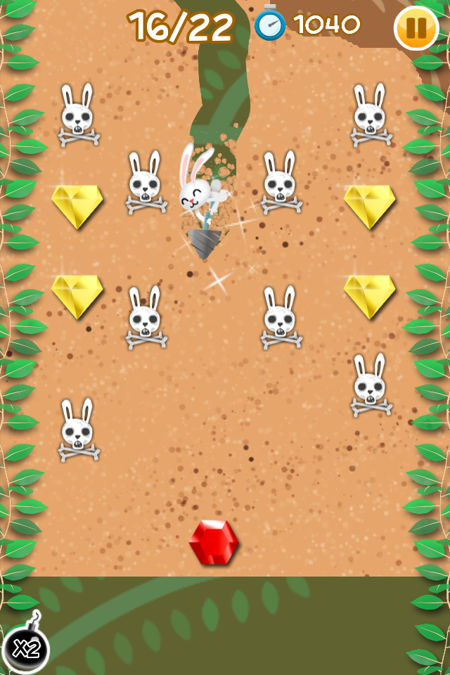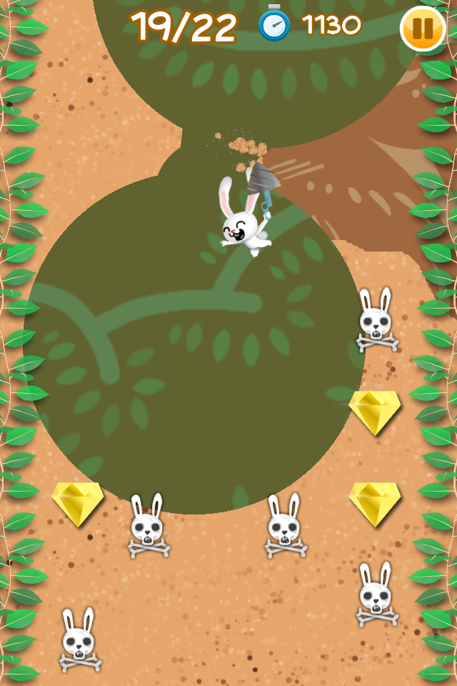 Gesteuert wird dieser durch das Neigen des iPhones und gräbt dann in die gewünschte Richtung. Der Schwierigkeitsgrad steigt stetig. Das eine mal ist ein massiver Fels im Weg oder es muss besonders genau gegraben werden. Driller Bunny ist ein nettes Casual Game für Zwischendurch und sein Geld allemal wert.